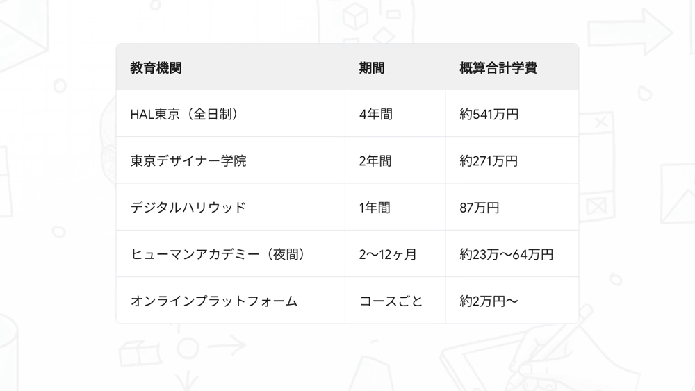 - ヒューマンアカデミー:MayaやSubstanceなど業界標準ツールが学べる。